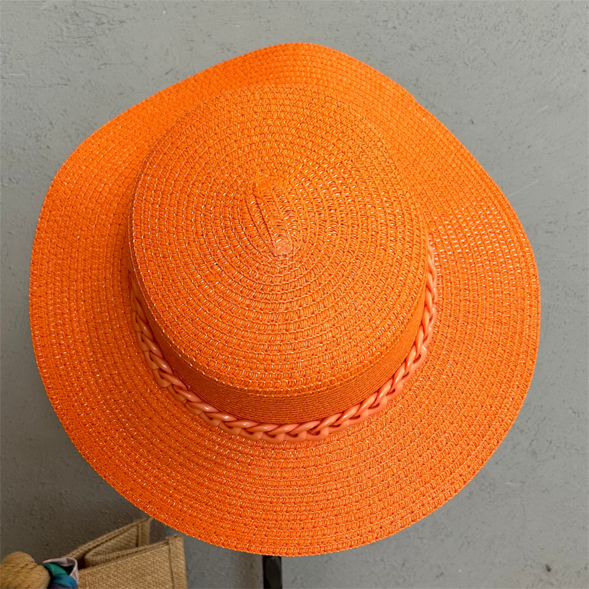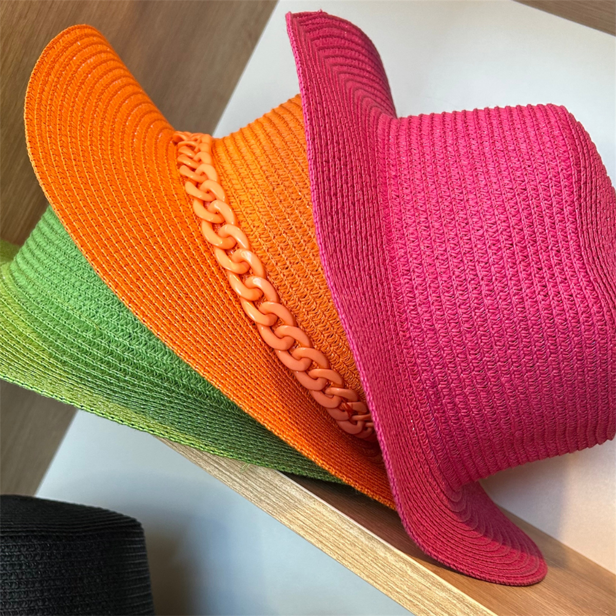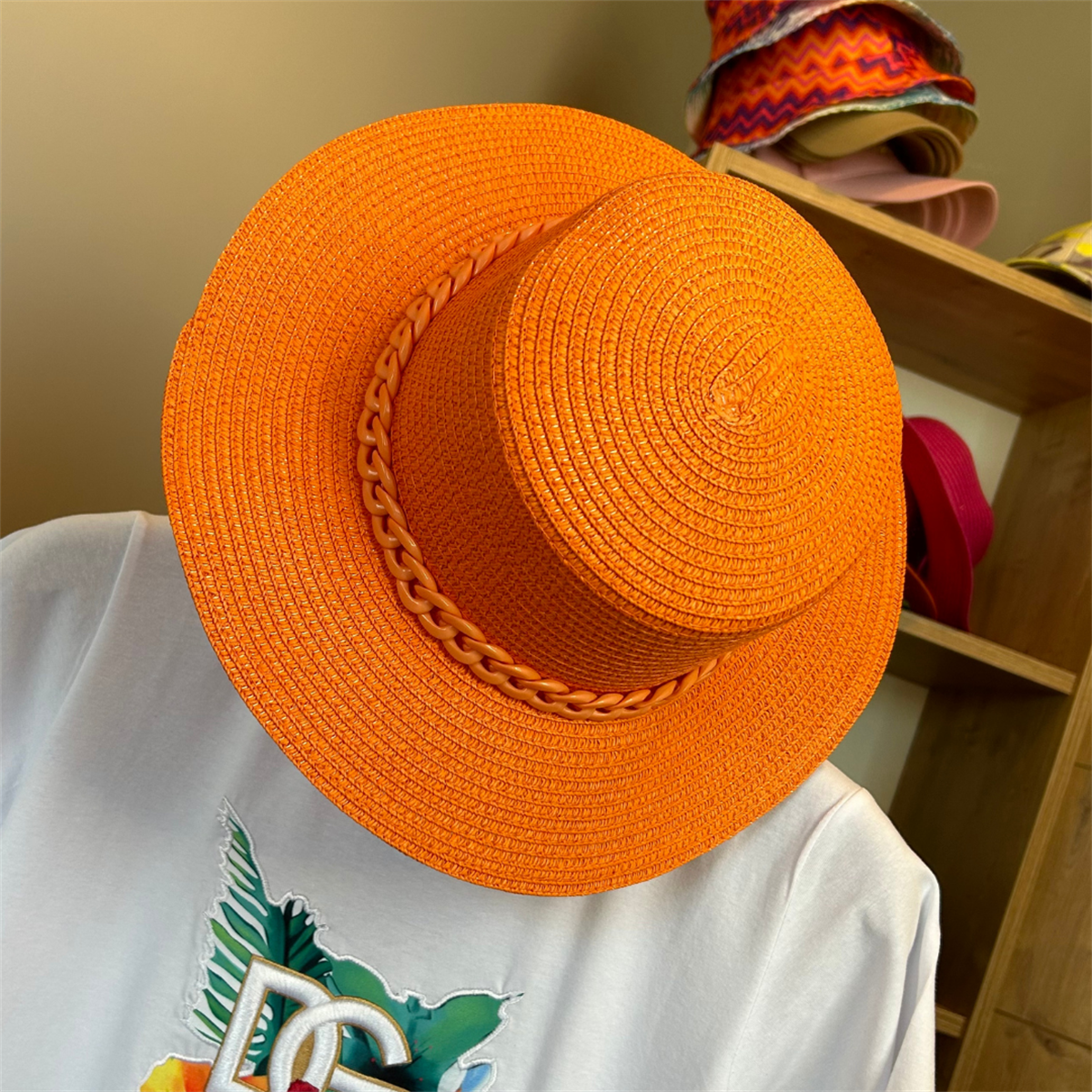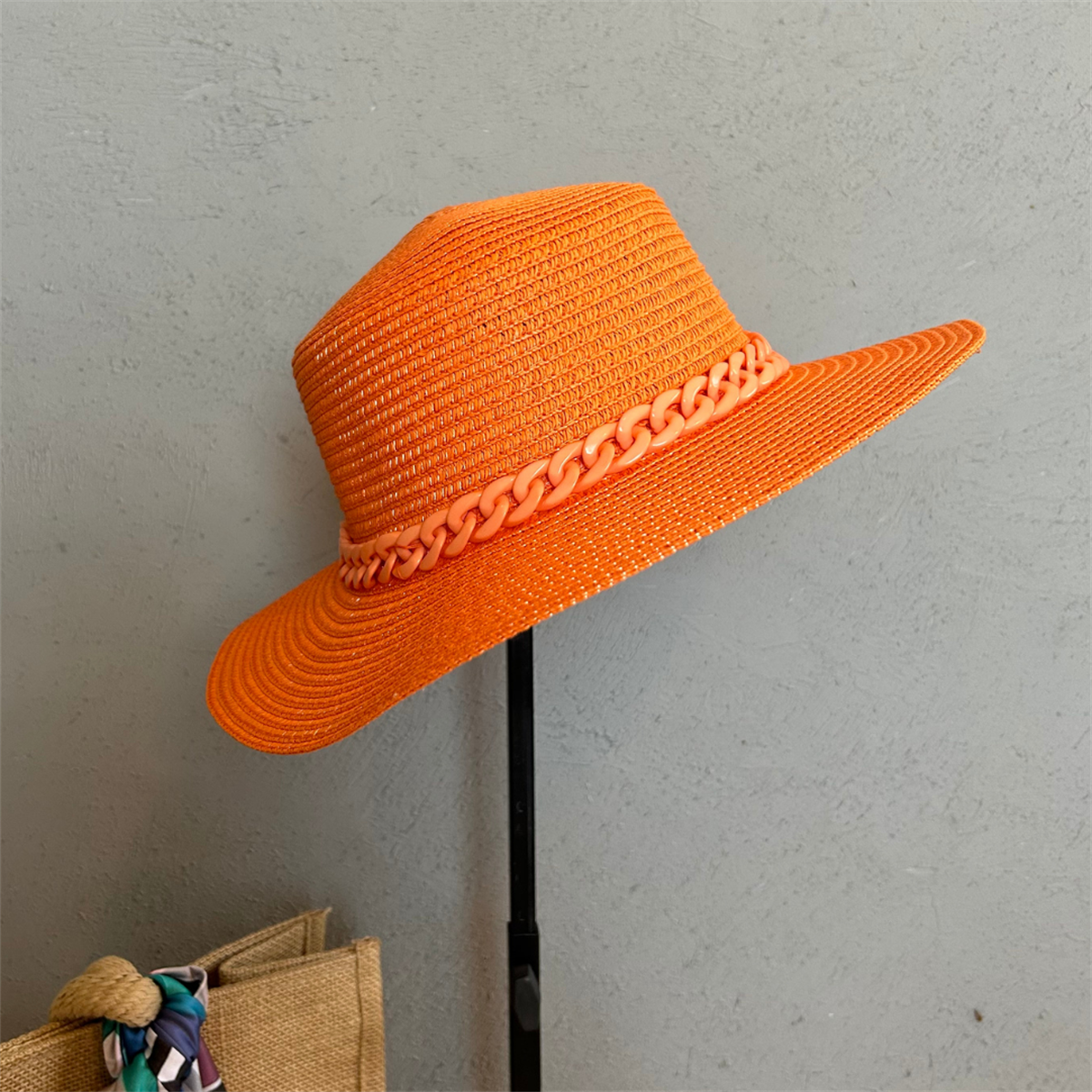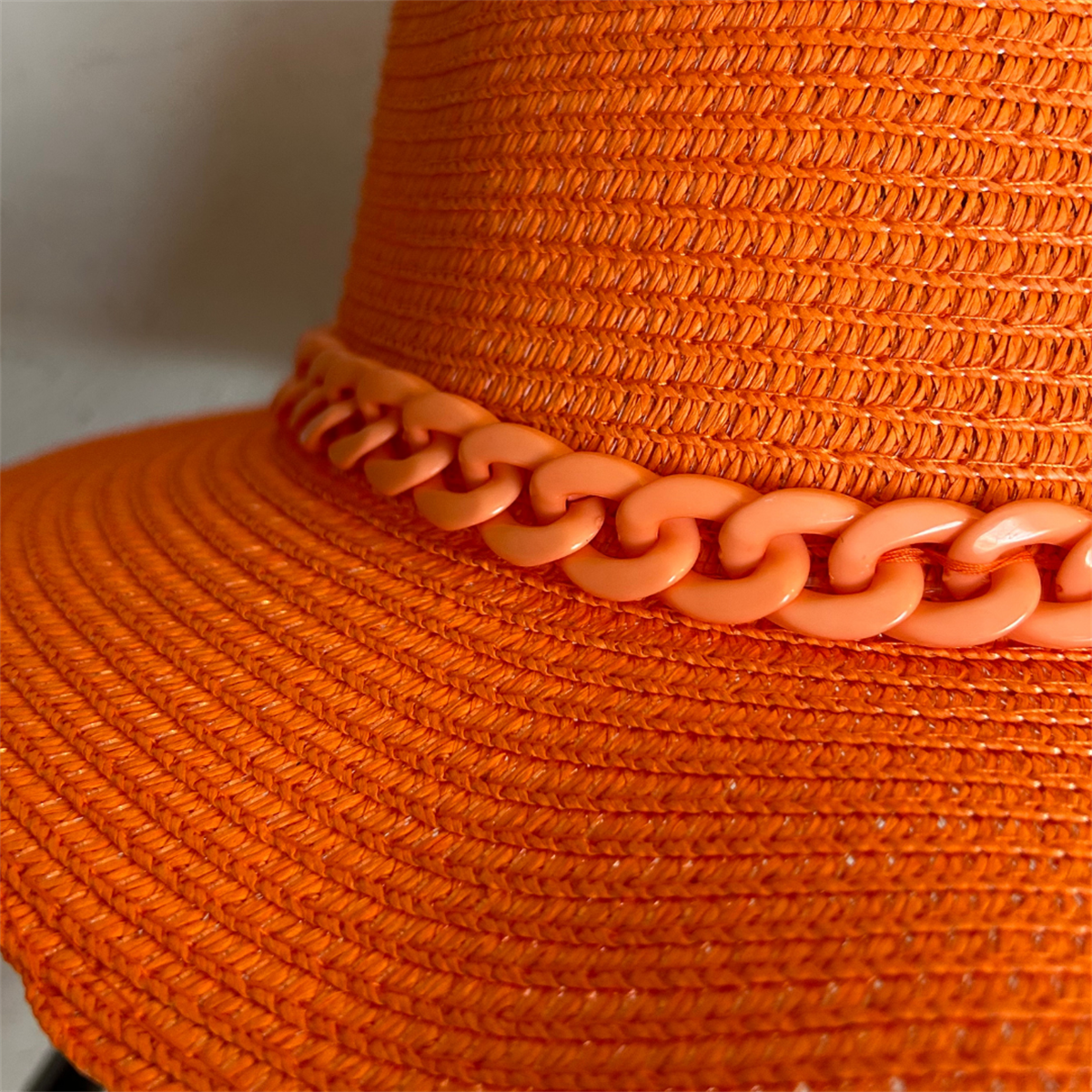 Zincir Detaylı Turuncu Renk Kadın Hasır Şapka